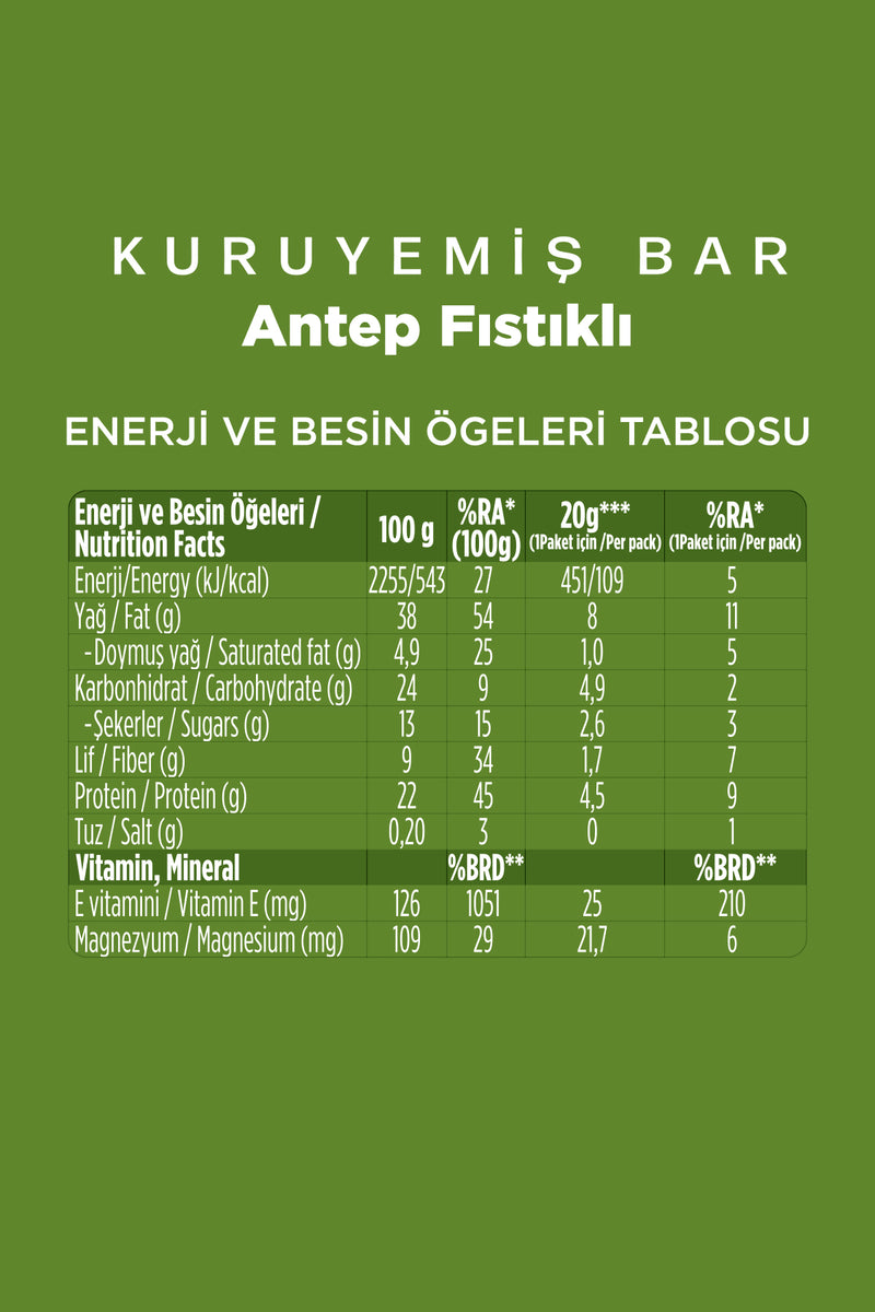 - Antep Fıstıklı Kuruyemiş Bar (20 g) x 6 Adet
