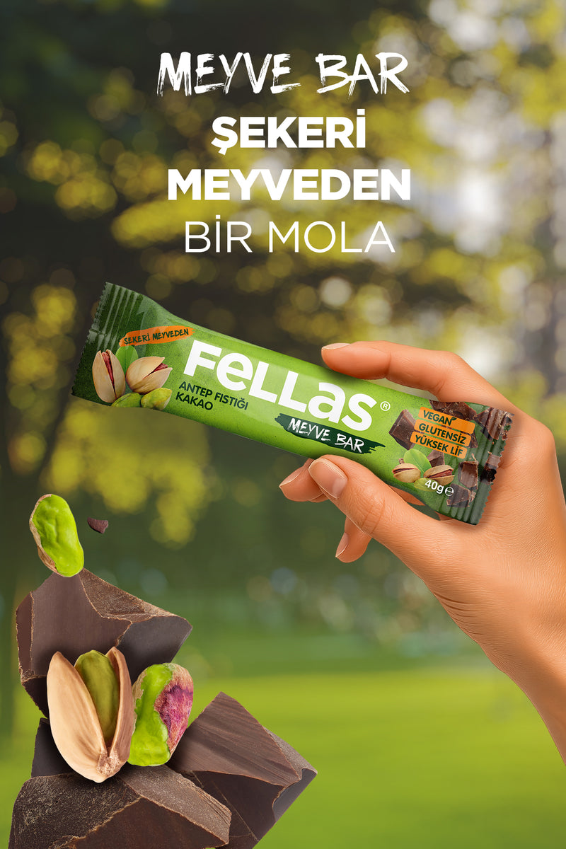 Fellas Meyve Bar, yoğun günlerinde yanında taşıyabileceğin koruyucu içermeyen bir seçenek! Karışık Kuruyemiş & Kakao, Chia & Yaban Mersini, Antep Fıstığı & Kakao, Chia & Hindistan Cevizi, Duble Kakao, Yer Fıstığı & Kakao, Muz & Badem, Çilek & Fındık çeşitleriyle her damak zevkine hitap eder. Şekeri meyveden ve glutensiz formülüyle ofiste, sporda veya yolda pratik bir atıştırmalık arayanlar için ideal!
