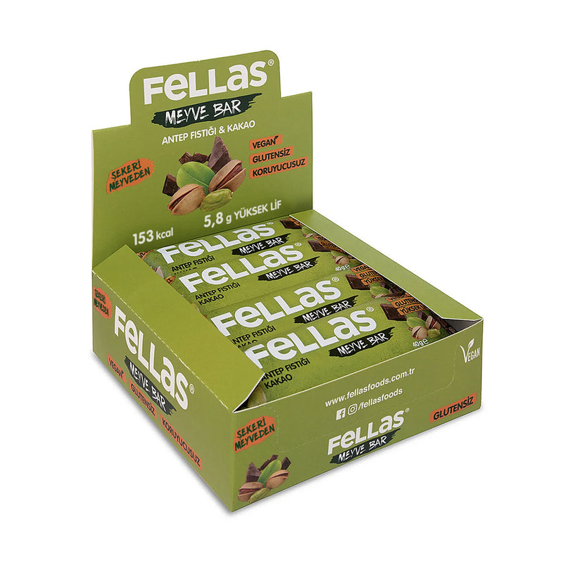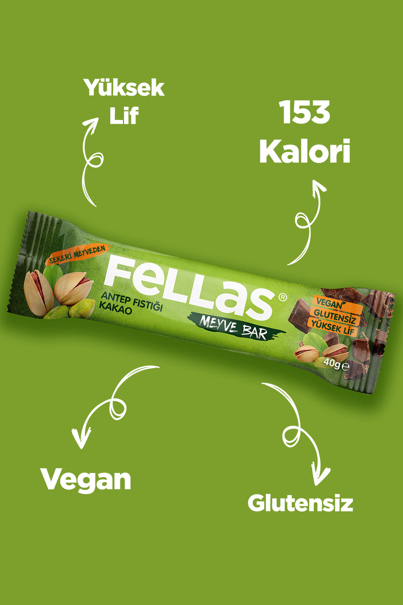 Fellas Meyve Bar, koruyucu içermez, meyvelerin tatlılığıyla şekeri meyveden olarak üretilmiştir. Yüksek lif içerir. Vegan ve glutensizdir.