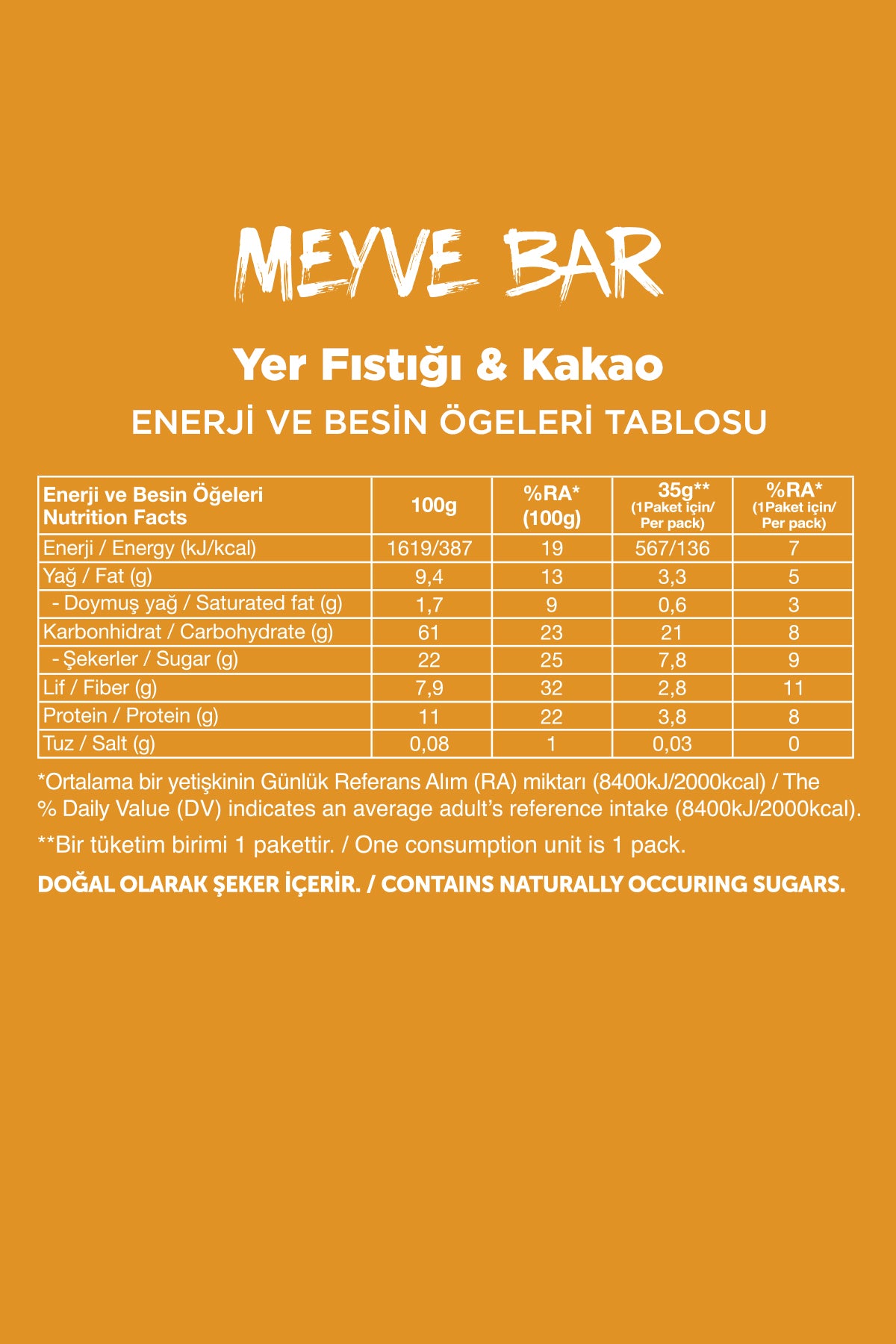 - Meyve Bar - Yer Fıstığı ve Kakaolu (35 g) x 12 Adet
