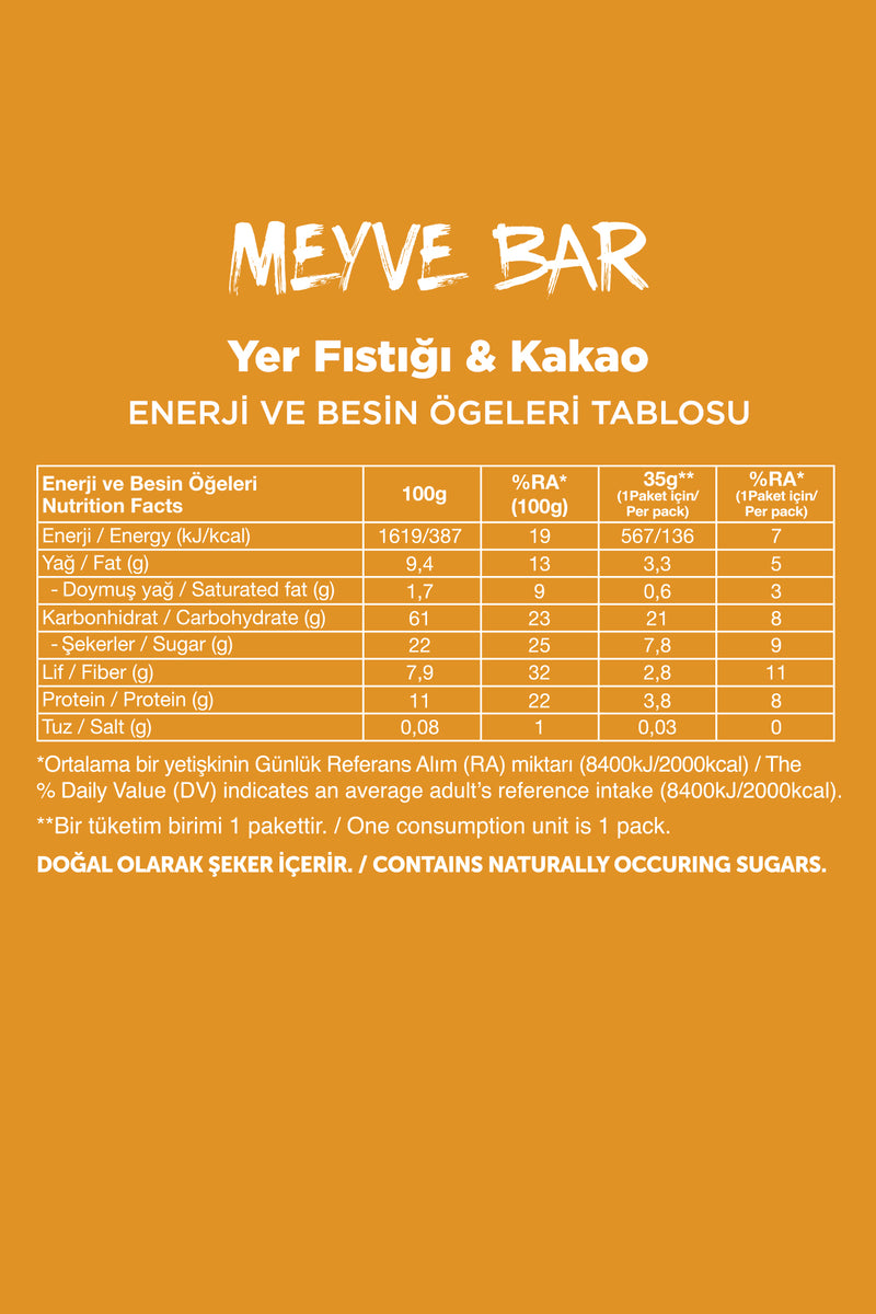 Meyve Bar - Yer Fıstığı ve Kakaolu (35 g) x 12 Adet