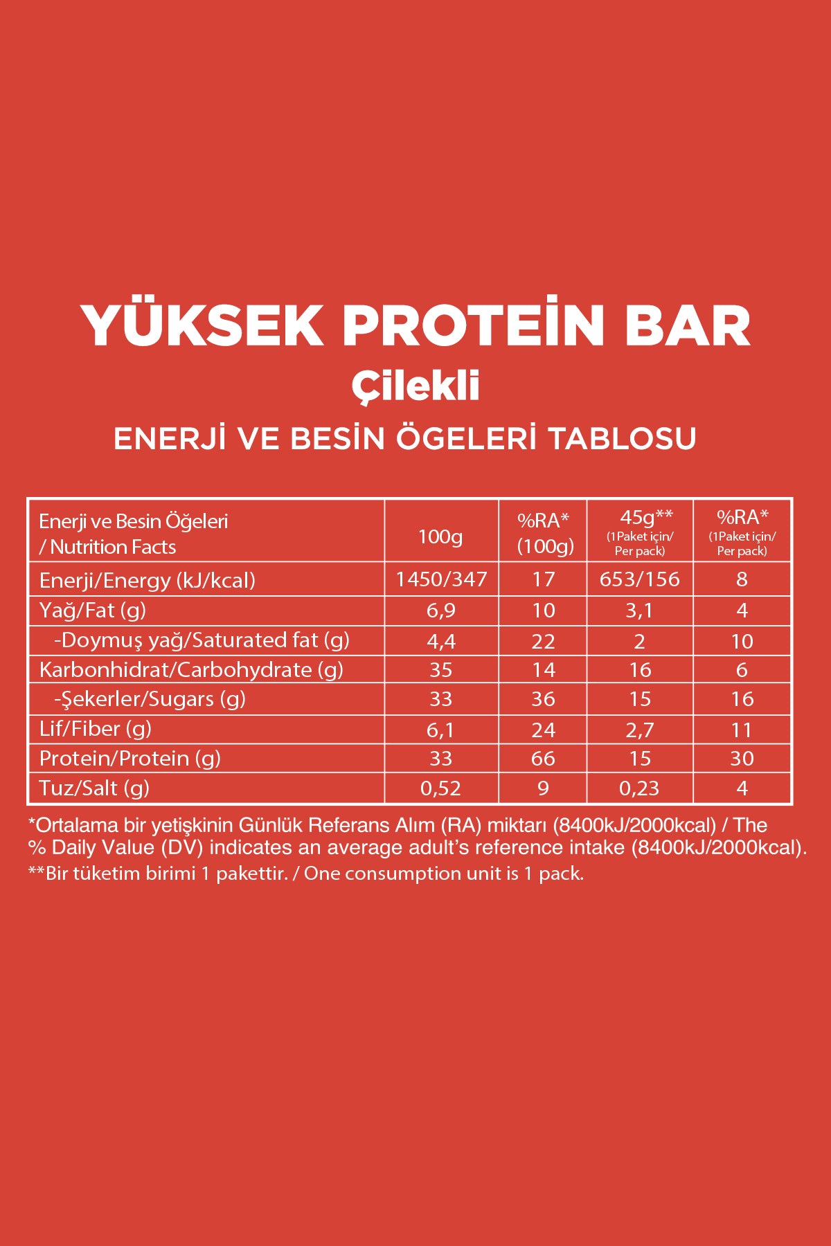 - Yüksek Protein Bar - Çilekli (45 g) x 3 Adet