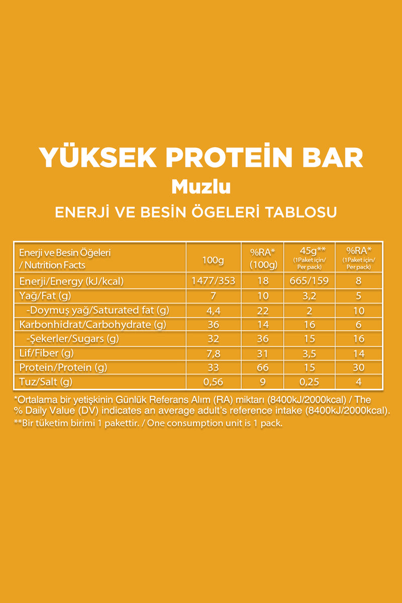 - Yüksek Protein Bar - Muzlu (45 g) x 3 Adet